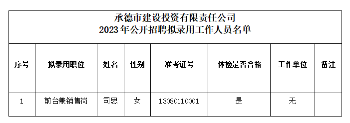 承德市建設(shè)投資有限責(zé)任公司2023年公開(kāi)招聘擬錄用工作人員公示公告